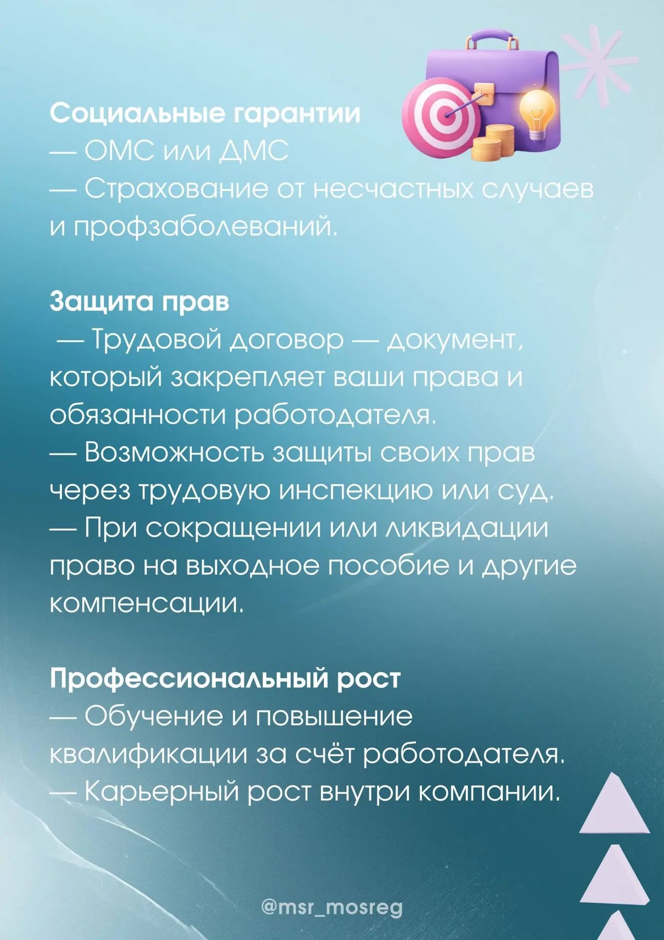 Официальное трудоустройство — это не просто подпись на документе, а ваш правовой щит в рабочих отношениях. Целый спектр гарантий уже в карточках!