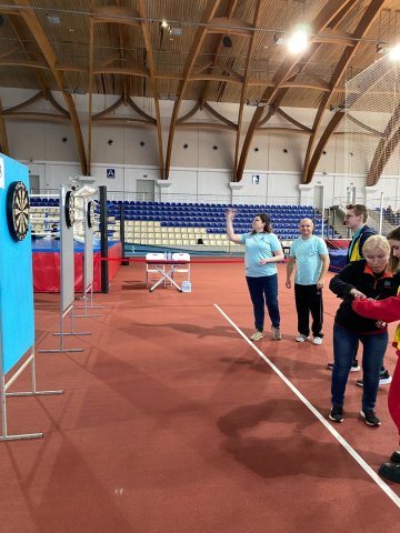 После приветствия и награждения организаторы предложили гостям сыграть в волейбол сидя, дартс, настольный теннис и футбол. Очень интересно и активно проходят состязания и встреча старых друзей.