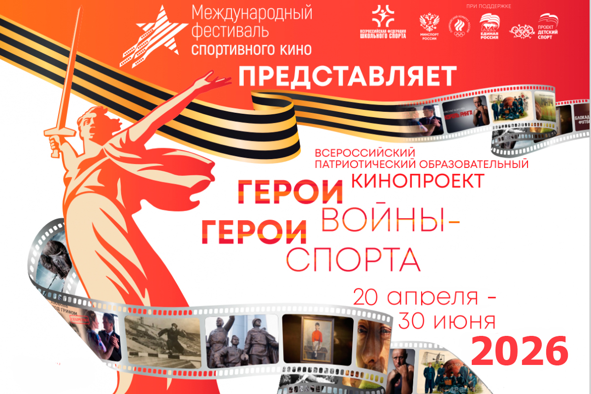 В рамках направления «Международный фестиваль спортивного кино» федерального партийного проекта «Детский спорт» в период с 20 апреля по 30 июня 2026 года пройдет Всероссийский патриотический образовательный кинопроект «Герои войны – Герои спорта».