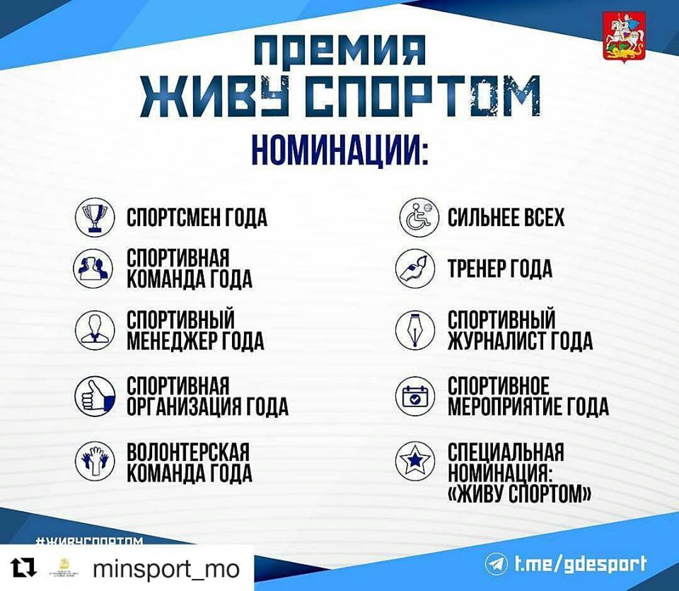 30 ноября в Доме Правительства Московской области пройдет вручение премии «Живу спортом».