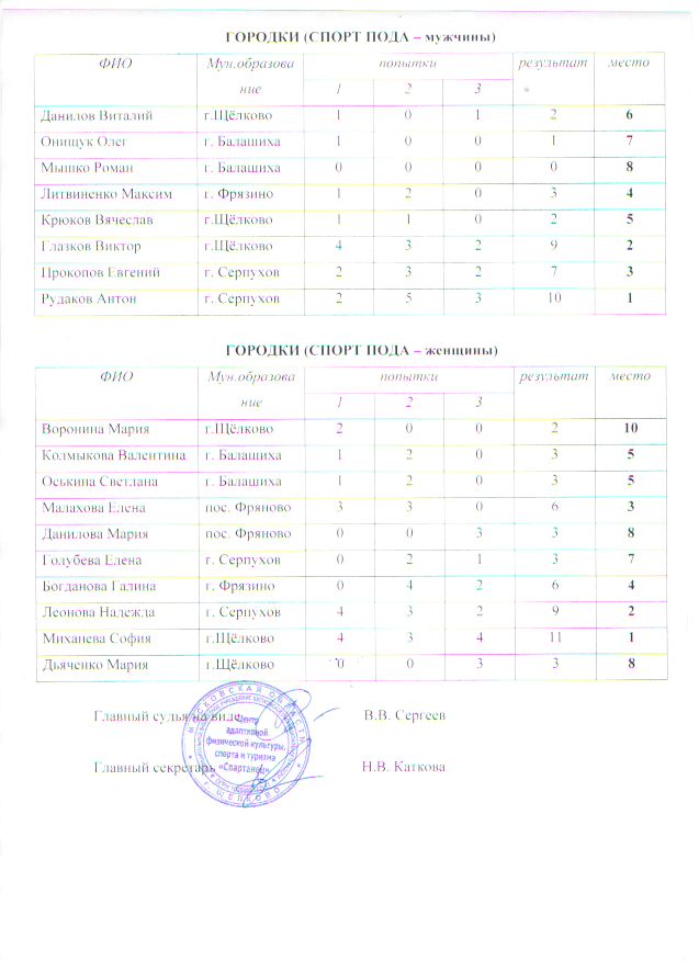 Центр "Спартанец" Протоколы соревнований Протоколы фестиваля спорта "Щелковская весна"