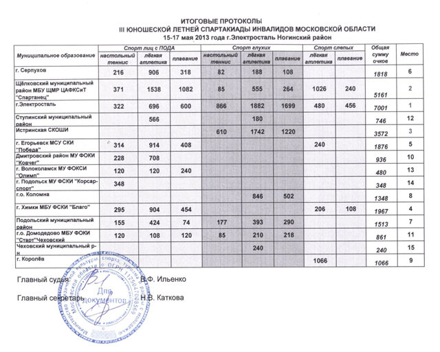 Все итоговые протоколы III юношеской летней Спартакиады инвалидов Московской области